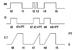 – When IN goes 1 → 0, timer starts; Q stays 1 during PT.