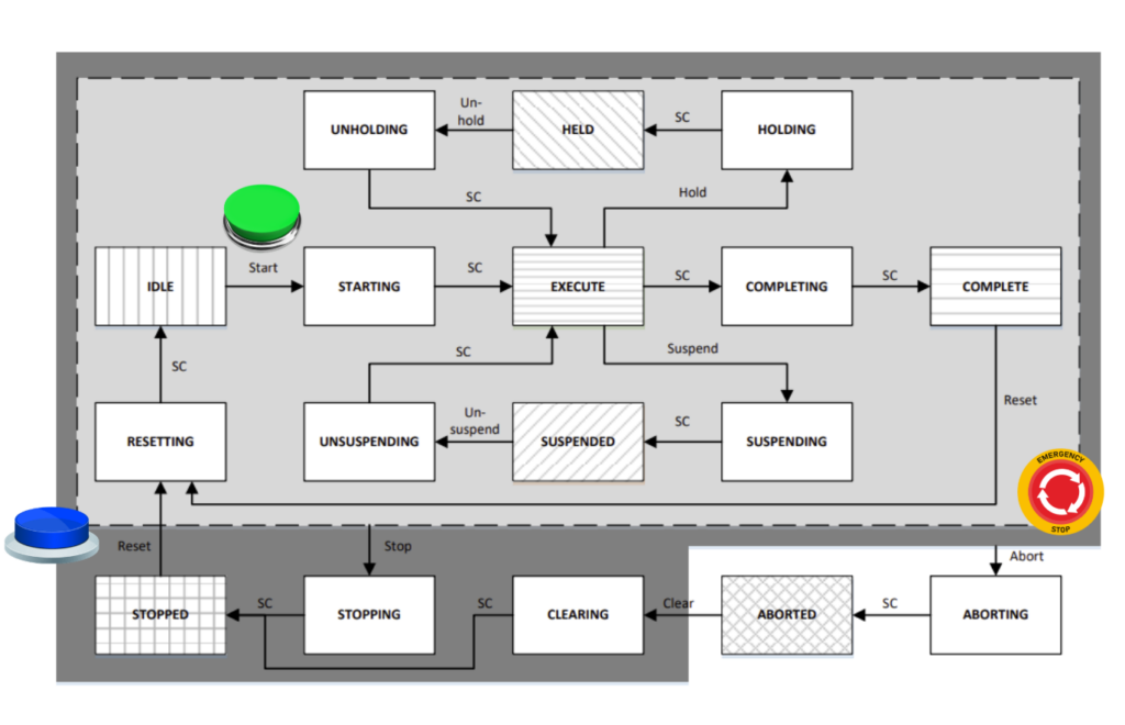 - The controller sets ACK_REQ=1 → the machine waits for reset.