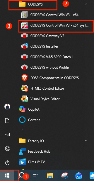 - Inside, find CODESYS Control Win V3 – x64 SysTraY, click to launch it
