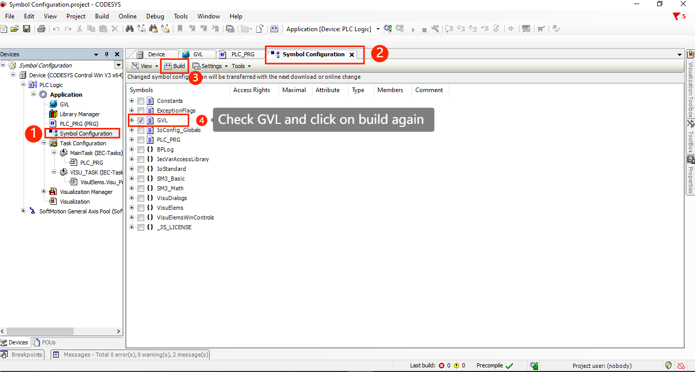 - Click the Build button to scan and include your GVL variables
