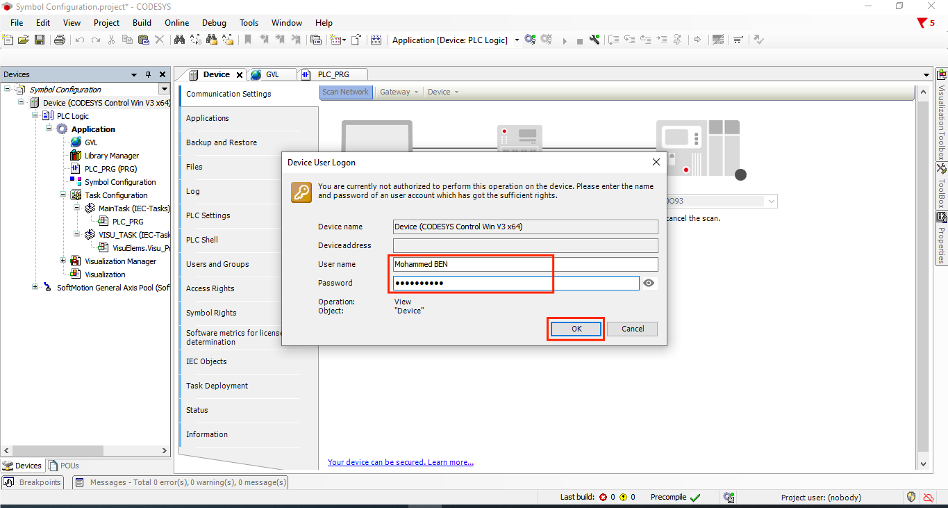 Now establish the connection to your CODESYS PLC symbols.
