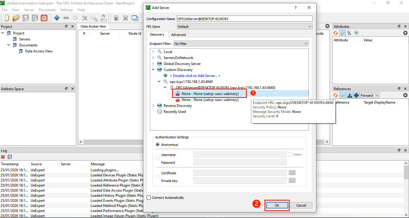- Open UaExpert application