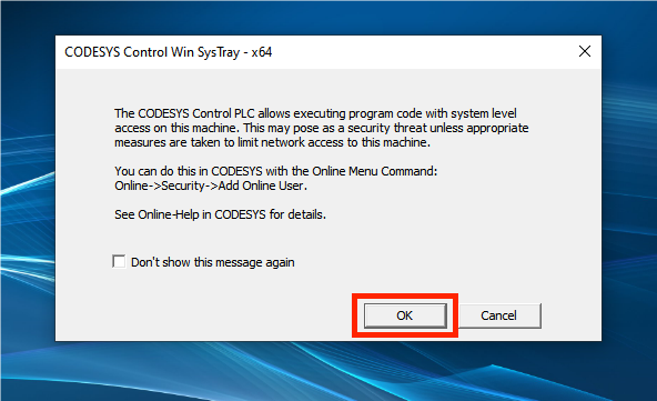 - Verify CODESYS Control Win v3 is running in system tray