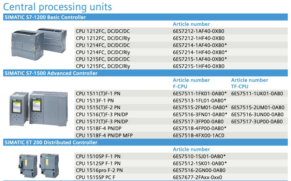 Fail-Safe Processors (SIMATIC S7-1200, S7-1200 G2, S7-1500, ET200SP)