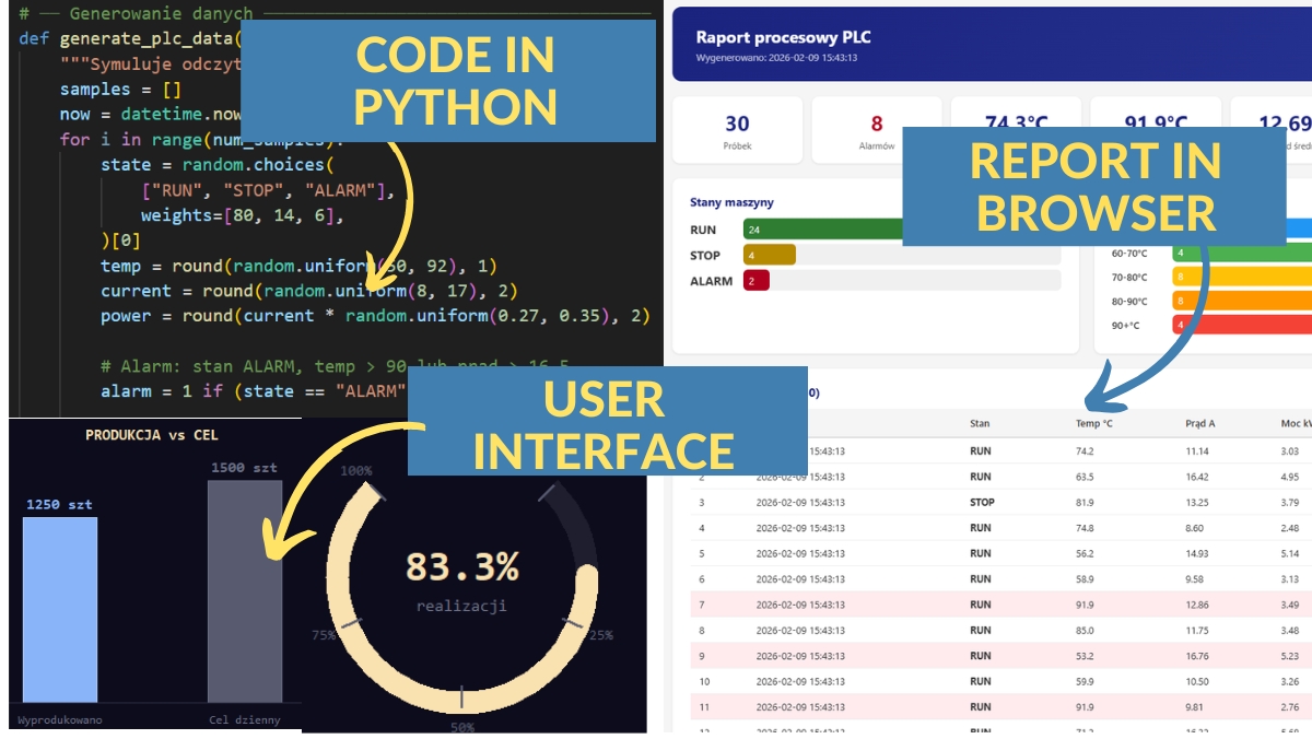 • Generating and processing data from PLC controllers using Python